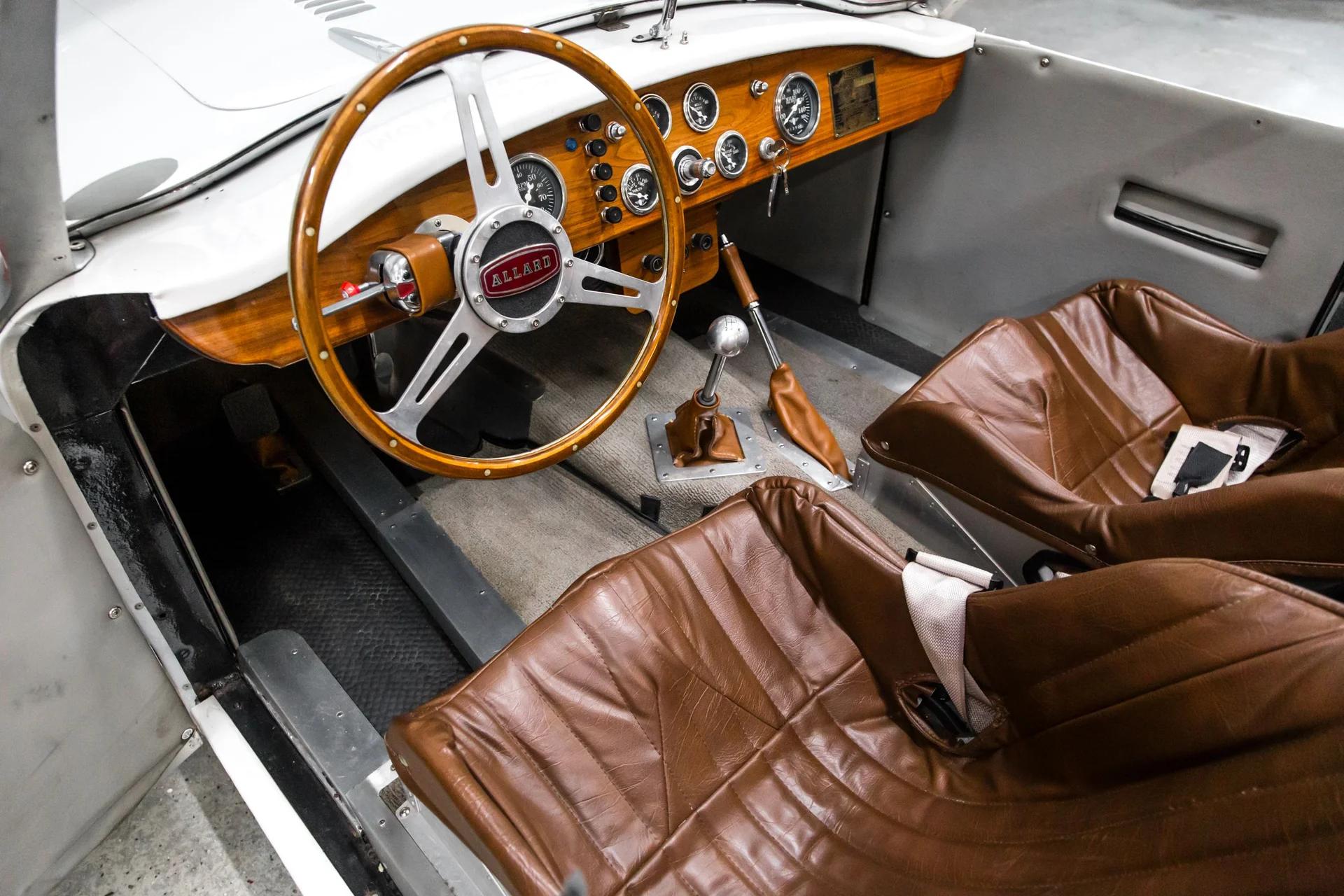 This very rare Allard 21Z has enjoyed the same owner since 1973.The owner embarked on a full ,extensive ,and complete restoration in 2010 finishing in 2015.The owner wanted to travel with the car so during the restoration he installed a 307 Chevy Small Block bored 40 over. The engine had a complete rebuild before restoration. The rear end was changed out to a Ford positrac with high gears for highway travel .In addition he installed a 14 gallon gas tank to work along side the factory saddle tanks. The transmission is a rebuilt Borg Warner 5 speed.