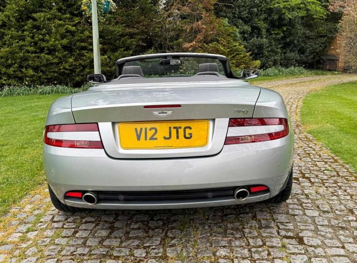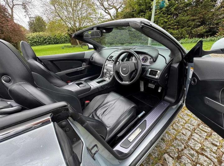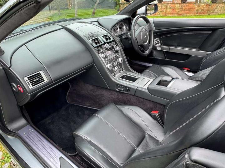 2009 Aston Martin DB9 Volante finished in Titainium Silver with Obsidian black hide interior with contrasting white stitching and a fully retractable black mohair soft top. This superb low mileage example comes with a fully stamped up service book with 17 service stamps from Aston Martin main dealers and the final stamp from a well respected Aston Martin specialist. The car is in unmarked condition both inside and out and the specification includes a Piano black centre console complete with Glass key, Charcoal headlining, electric heated seats with lumbar support, Satelite navigation and cruise control. The DB9 provides an effortless driving experience and it is rare to find a 17 year old example with such low mileage in this exceptional condition.