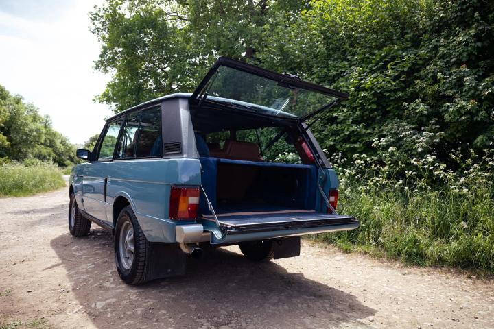 At first glance, this is a textbook early Range Rover—the model many regard as the purest expression of the original concept. The body has been backdated to replicate the look of a 1973 model, complete with original steel bumpers and the fabulous, purest profile.