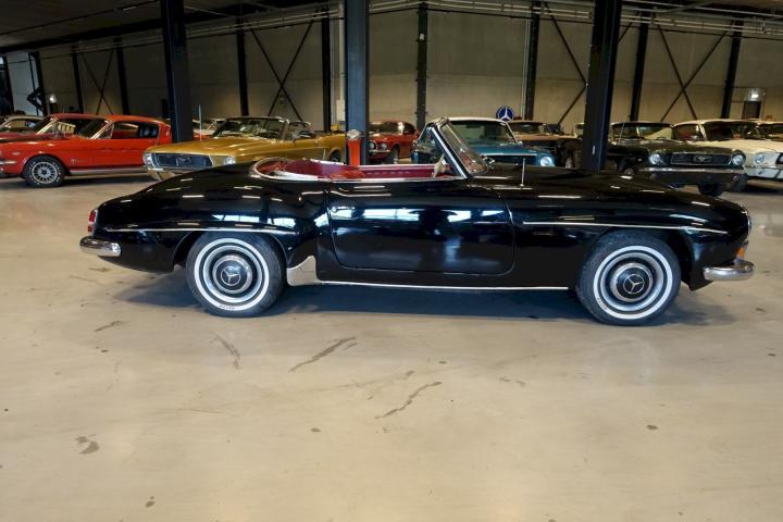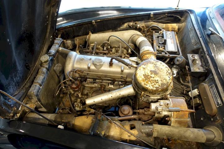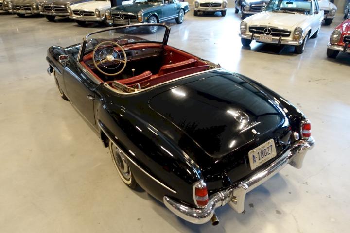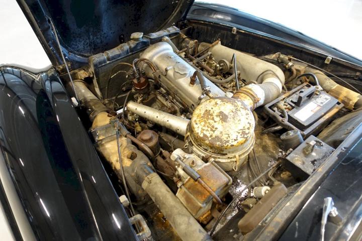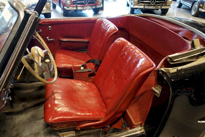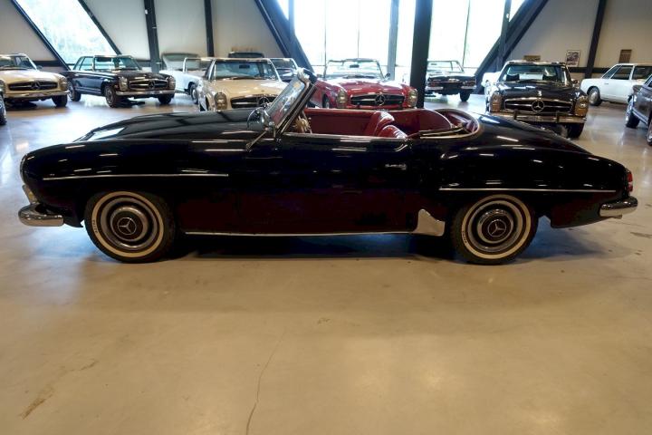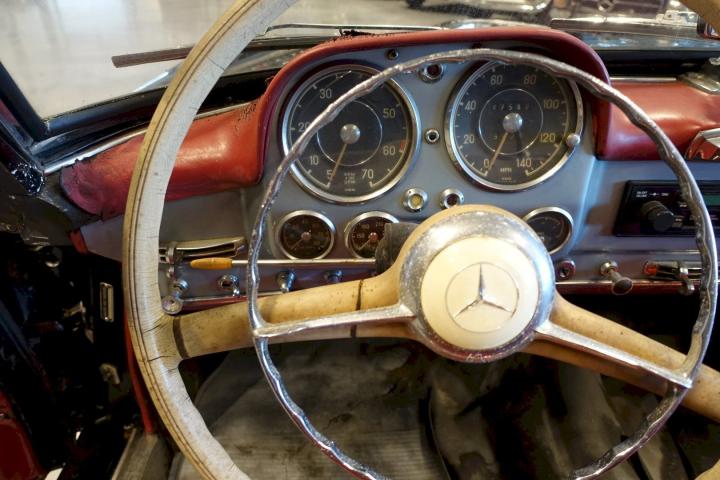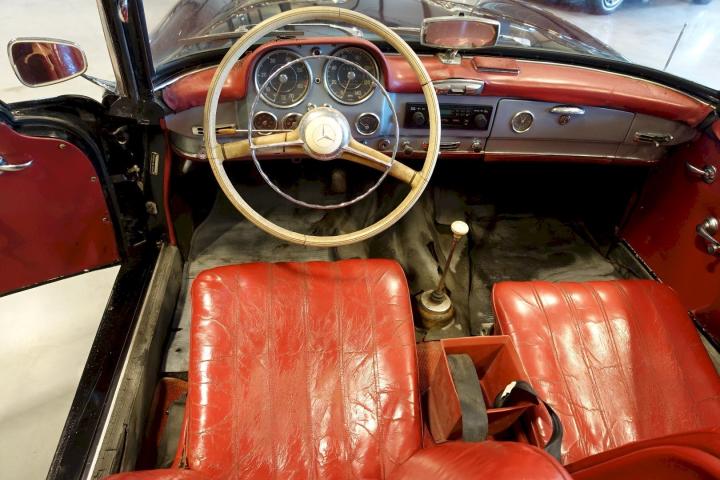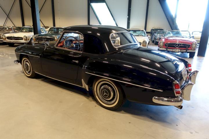 Matching nummers deze 190SL, af fabriek en zo ook weergegeven op de Fabrieks kaart is het dashboard uitgeleverd in metallic blauw 353.