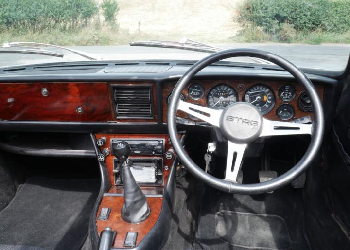 Very well presented early Mark 1, seems very sound, very good paint with the odd blemish and nice interior, re-varnished woodwork, fitted with Mk2 carbs for reliability. Lovely drive with melodious note from V8, non-overdrive example only 3000 rpm at 60 mph, drove to us from London. Recent work includes new clutch, gearbox overhaul, hood and hood framework, battery, rear seat belts, radiator and coolant hoses, re-conditioned water pump, rear brakes and a re-wiring. Comes with lots of history and handbook. Not perfect but very good value.