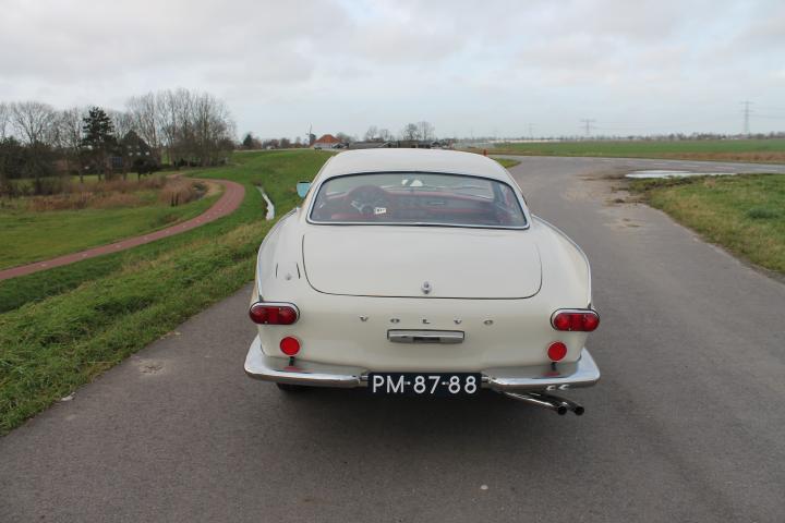 Het hier getoonde voertuig is een Volvo P1800 uit 1961, uitgevoerd in de kleur Wit, met een Rood interieur. Deze P1800 verkeert in uitzonderlijke staat dankzij een uiterst grondige restauratie. De carrosserie werd tot het kale metaal gebracht door een zgn. dompelbad en na het benodigde plaatwerk, kreeg de carrosserie een KTL-behandeling. (Hierbij wordt de kale carrosserie opnieuw gedompeld in een roestwerende laag).