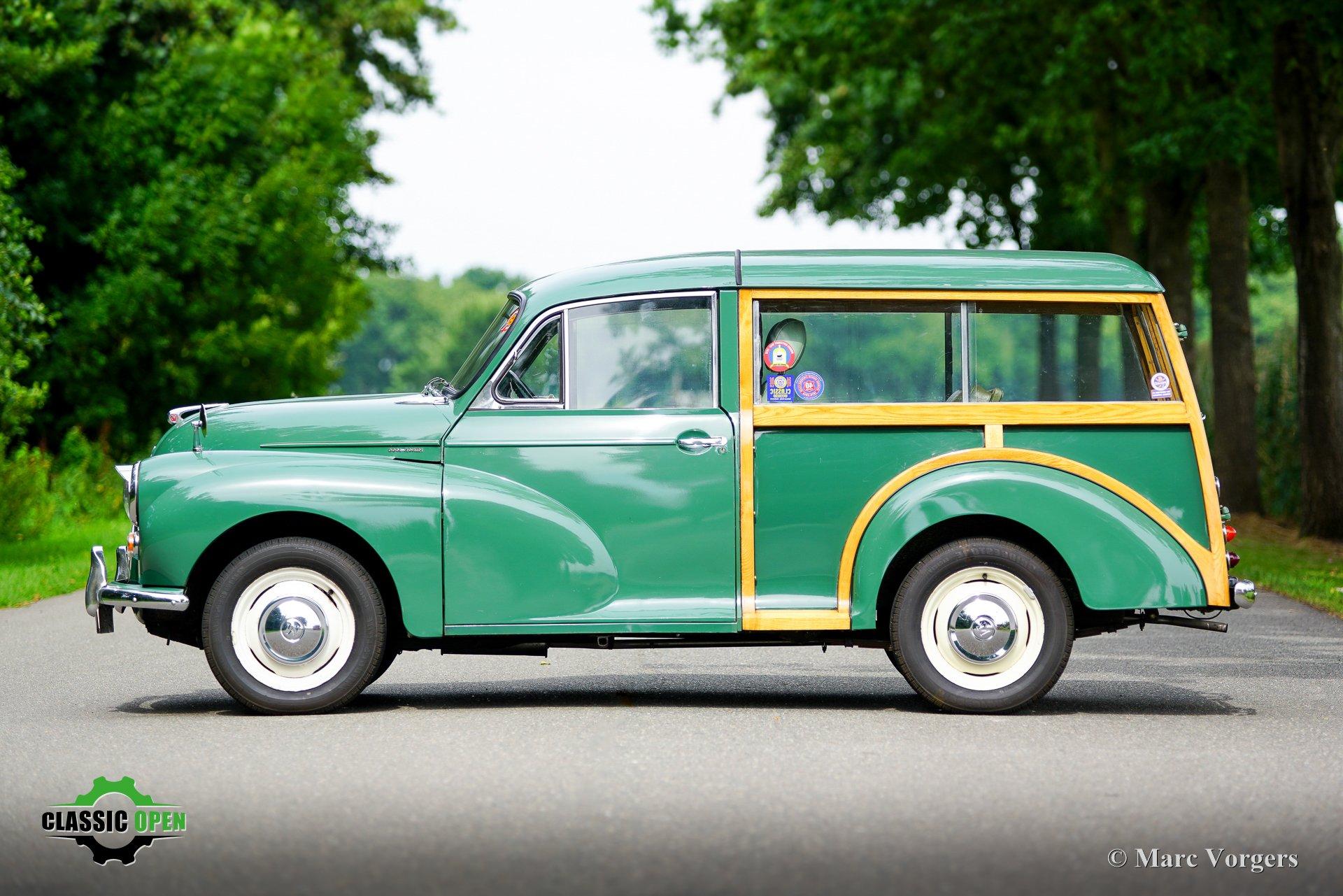 Deze prachtige Morris Minor Traveller uitgevoerd in Almond Green met een bijpassend groen interieur, werd in 2001 geïmporteerd uit Engeland en is sindsdien zorgvuldig onderhouden in Nederland.