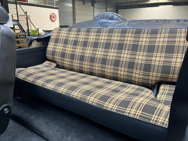 Inside, the car features one of the most desirable and rare upholstery options for a W460: the original Schottenkaro tartan fabric. Most early G-Wagons were delivered with simple black interiors, so finding a Cabriolet with this original tartan trim and in such authentic condition is extremely uncommon. It gives the car a warm and period-correct charm.