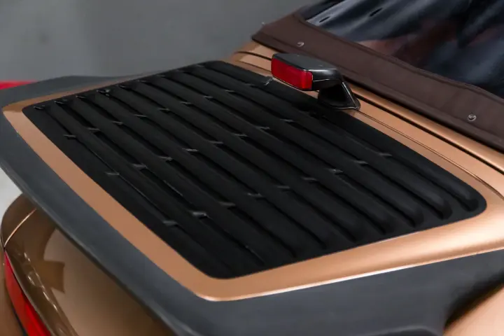 This stunning G50 Cabriolet lay asleep for 10 years in static storage .We were able to obtain the car and immediately went to work waking the car up.This process included a leakdown test before engaging in work, new clutch ,major service ,new tires ,hood and deck lid shocks,complete brake service,replacing oil return tubes ,injectors and plugs ,new soft top and headliner and fresh paint ( the car sat in the same place with one side exposed to the same sunlight daily ,paint faded).The car shows no indication of an accident history,all four corners are original sheet metal (vin stickers are on all panels)