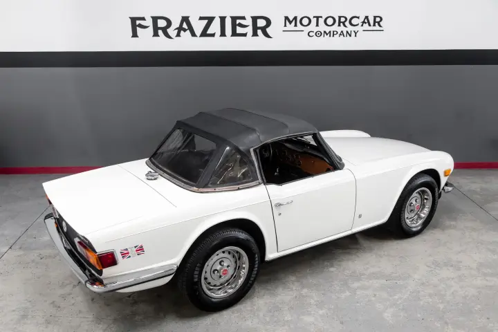 This honest SOLID Overdrive TR6 is as straight as it reflects in the pictures. Note the perfect factory panel gaps with all gaps vertically and horizontally are even and straight. The body seams are clean and correct. The doors are flush against the fenders and quarter panels. The panels are straight. Soft top is in good order. The tires are deep in tread mounted to original wheels with good finish on all four wheels and center caps. Paint is in good order .Interior seats are full, not broken down ,dash cap is good with no cracking or warping. Gauges are crisp, clean and work as designed.