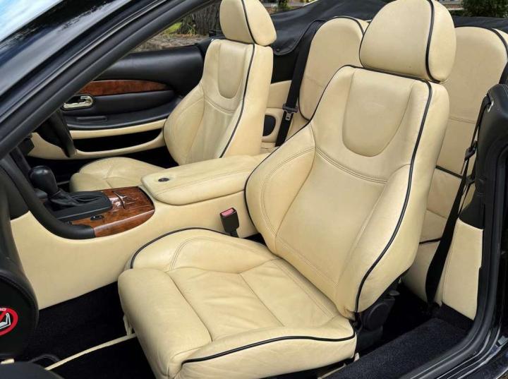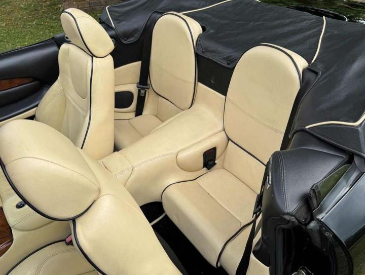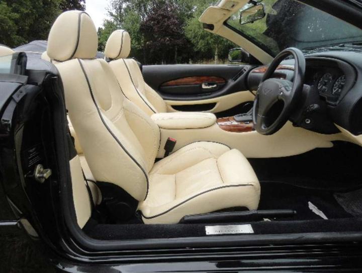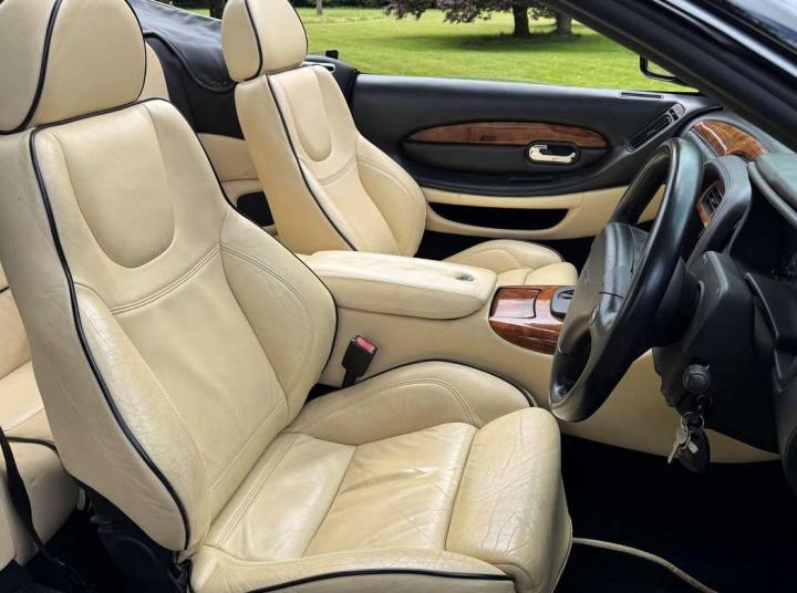 2003 Aston Martin DB7 Vantage Volante finished in Onyx Black with cream hide piped black with a black mohair soft top. This is a lovely, low mileage example that was sold by us to the last owner back in 2013 when the mileage was only just over 31,000. The current mileage is still only 36,025 miles. The condition of the whole car is as you would expect for such low mileage and the car is perfect to drive. It comes with a fully stamped service history with 14 service stamps in the service book and numerous servicing invoices and expired mot certificates. The specification includes Touchtronic transmission, a leather hood cover, Mesh Grilles, a fully adjustable steering column, heated electric seats, a CD player and 18” alloy wheels. Not expensive for one in this condition at £24,950