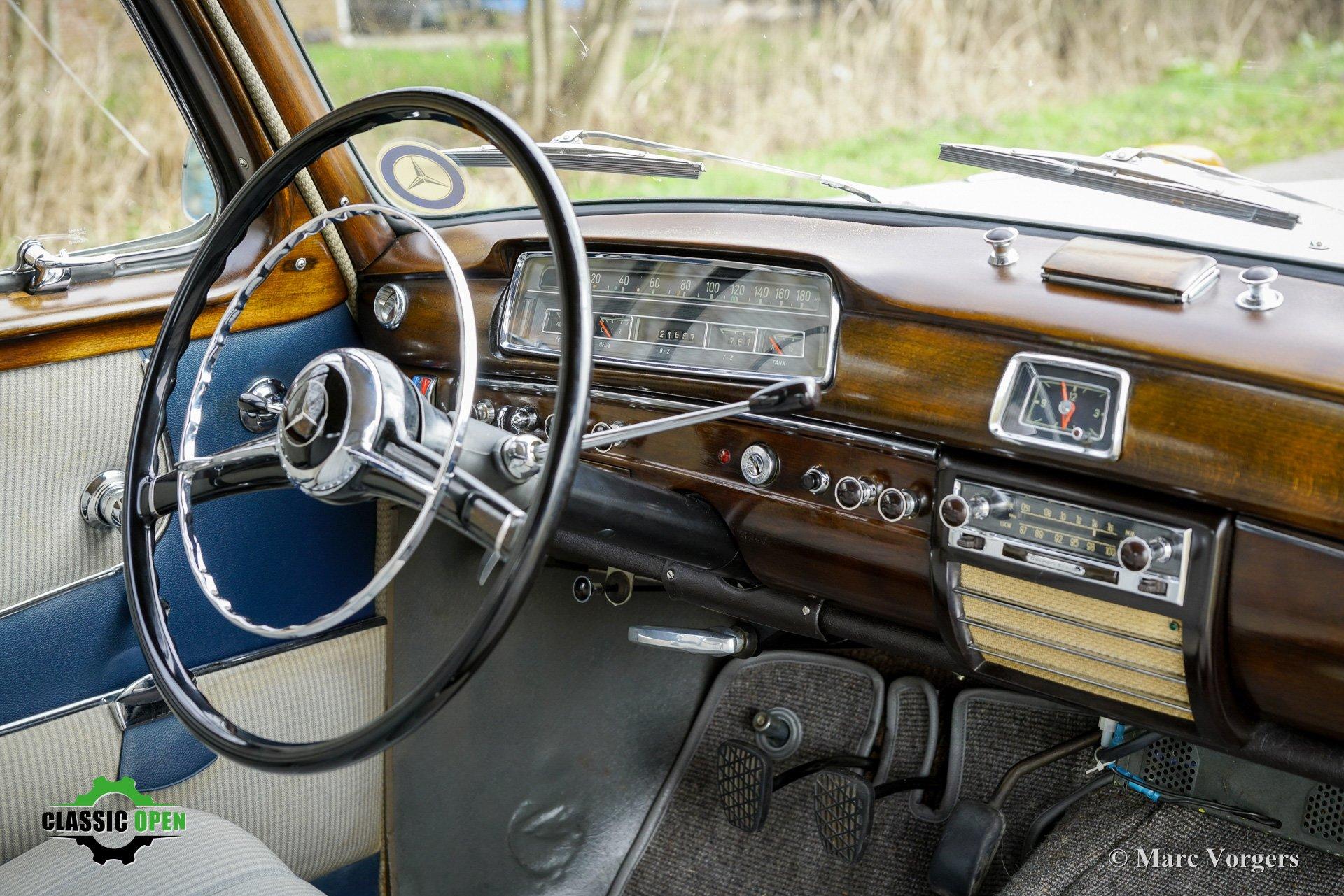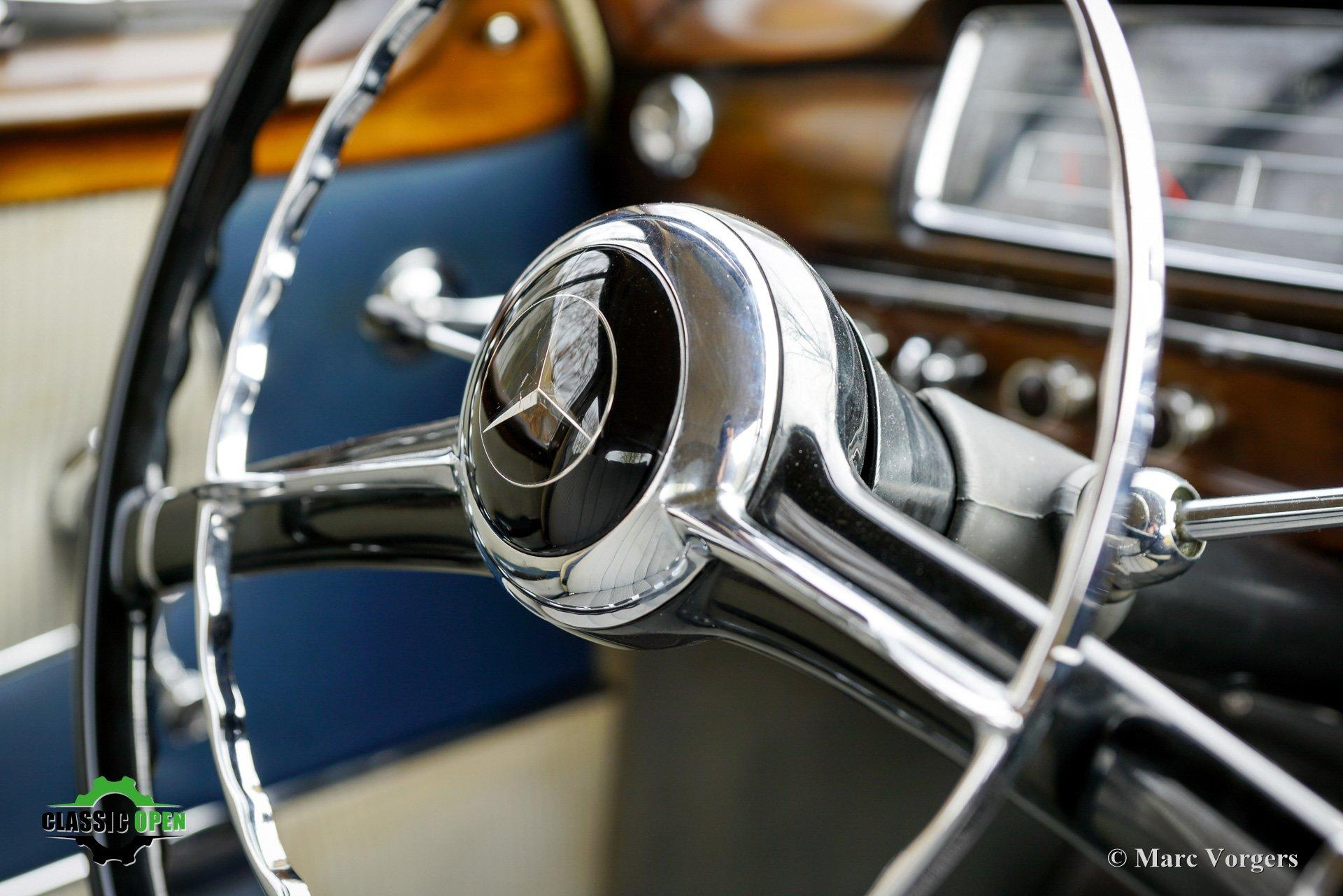 Het interieur is voorzien van prachtig houtwerk op het dashboard en rond de ramen, en de auto is uitgerust met de meest geavanceerde Becker-radio van die tijd: de Mexico, met zijn motorisch aangedreven zenderzoekfunctie (de radio werkt momenteel niet - niet getest - en is alleen ter decoratie aanwezig). Deze fraaie Mercedes-Benz presenteert zich als een uitstekend bewaard gebleven origineel exemplaar in zeer goede staat.