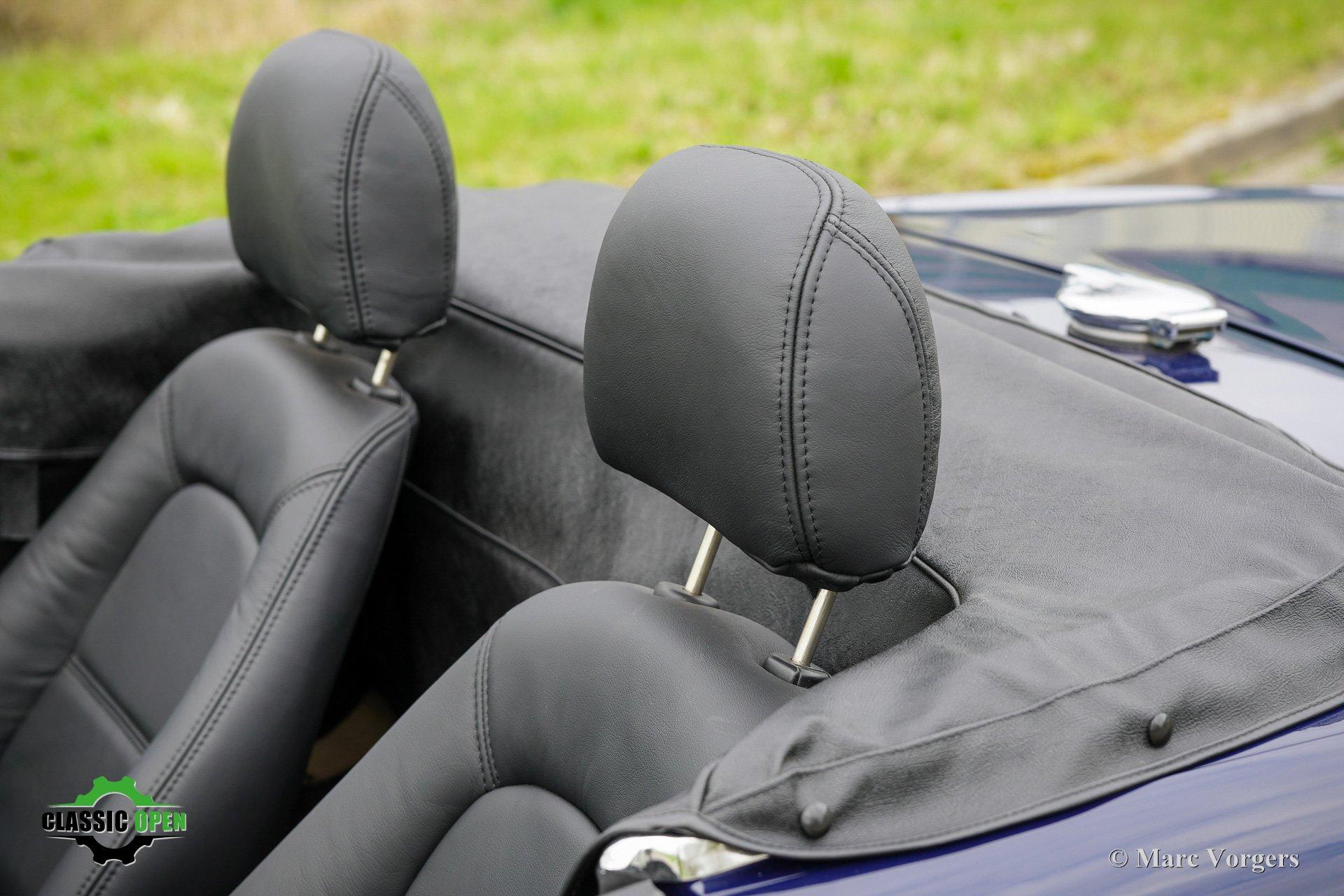 Exterieur uitgevoerd in donkerblauw, gecombineerd met een zwart interieur met zwarte lederen stoelen en zwarte vloerbedekking. Voorzien van een blauwe mohair soft-top en een zwarte vinyl afdekhoes.