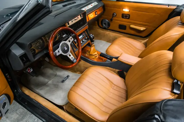 The car has correct wheels ,deep tread tires ,a good soft top, nice carpets, great paint ,straight dash with no cracks or warping ,good, well stuffed seats and straight center console.