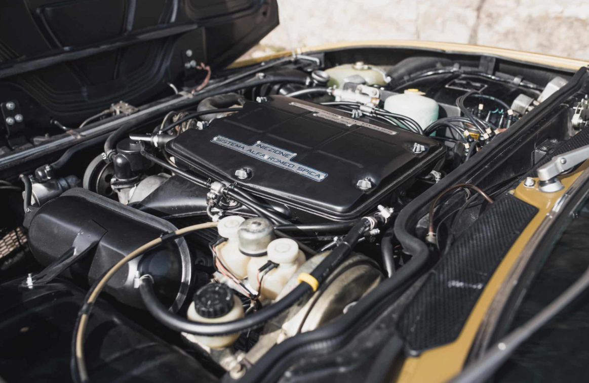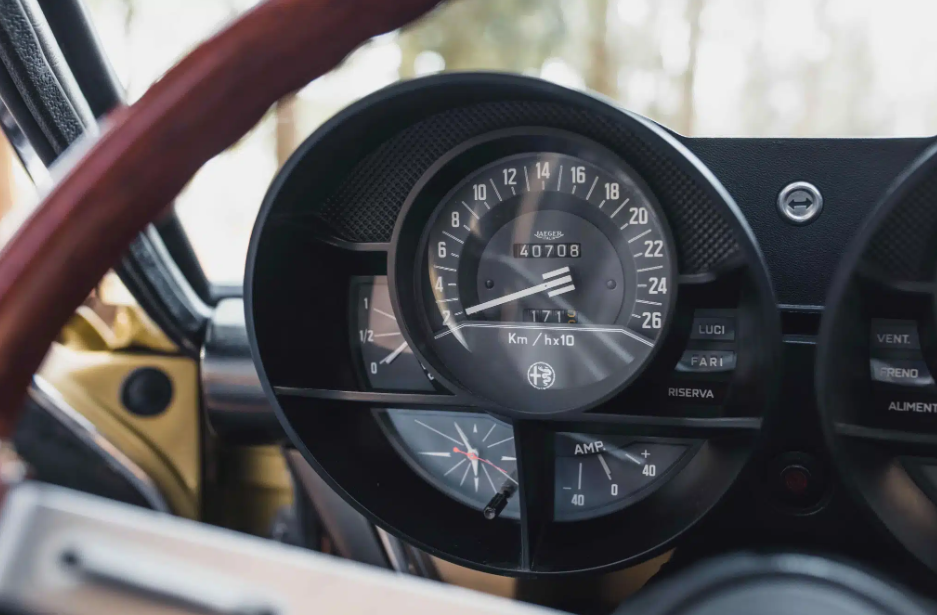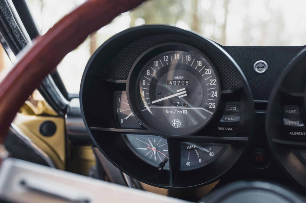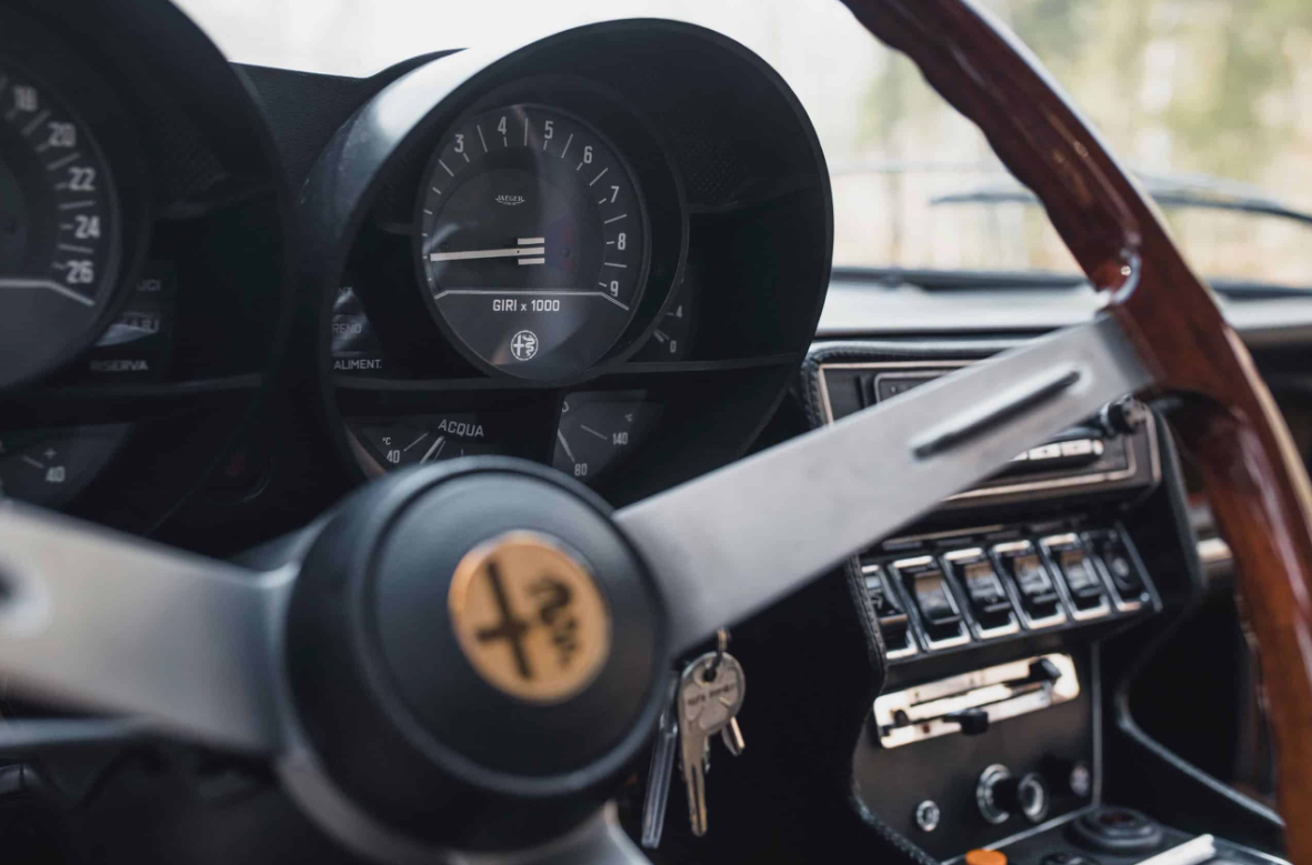 Beneath the Montreal’s sleek exterior lies a potent heart—a 2.6-liter V8 engine capable of producing 200 horsepower. This engine, derived from Alfa Romeo’s successful Tipo 33 sports prototype racer, propels the Montreal from 0 to 60 mph in just 7.6 seconds and allows for a top speed of approximately 137 mph. The V8 engine is mated to a smooth-shifting 5-speed ZF manual gearbox, enhancing the car’s sporty driving experience.