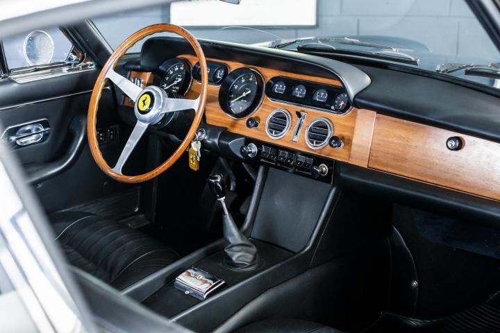 The interior was also redesigned: the floor-mounted pedals were replaced by a suspended unit, a central console was installed between the transmission tunnel and the lower edge of the dashboard, and the layout of the controls and ventilation was modified. The bodies were mounted on a 2,650mm wheelbase chassis bearing chassis number 571 (Series 1), then chassis number 571/65 (Series II). All chassis were numbered according to the odd-numbered sequence of Ferrari road cars, between 4,963 and 7,533 for Series I and between 7,537 and 10,195 for Series II.