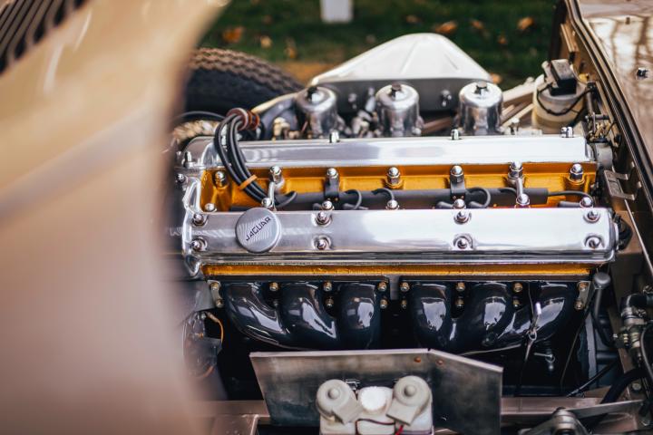 Powered by its original 4.2-liter inline-six engine, this E-Type delivers exhilarating performance, with smooth power delivery and a distinctive exhaust note. The intake setup of triple SU carburetors not only looks beautiful mounted on the manifold, but they deliver the perfect combination of air to fuel which allows the E-type to drive like a dream. The car is equipped with the synchronized 4-speed manual gearbox which makes for a smooth shift and driving experience. Its original wire wheels, classic chrome bumpers, covered headlights and exquisite detailing reflect the careful preservation of this iconic automobile.