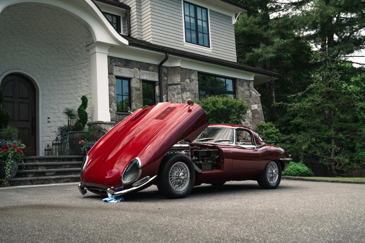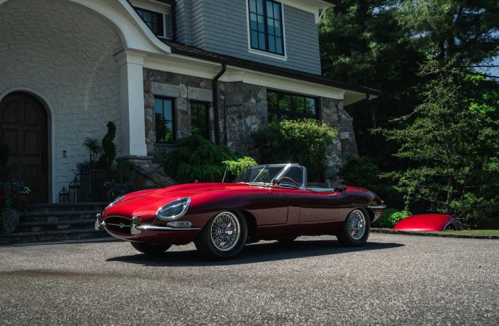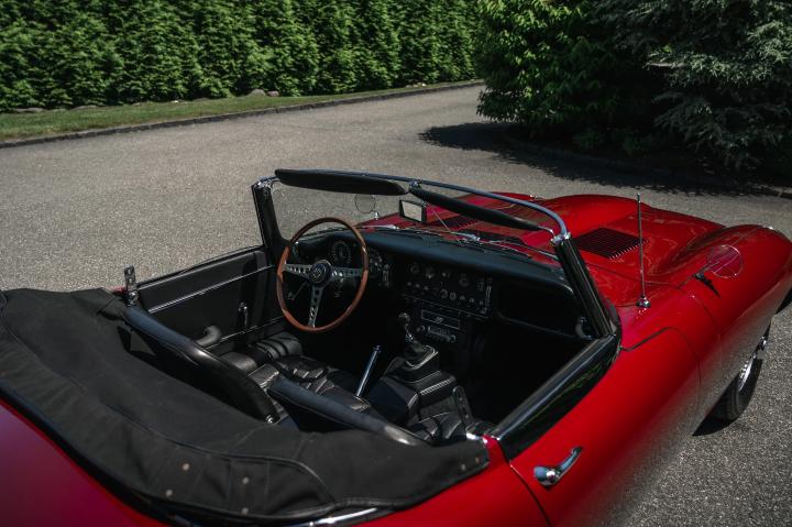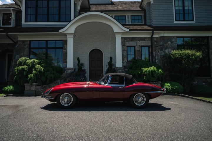 A standout example of the Series 1 E-Type is this 1967 Jaguar XKE Roadster presented in its original Opalescent Bordeaux Claret paint, complemented by a black leather interior and matching convertible top. Despite being built in 1966, it wasn't registered until November 1966, thereby designated as a 1967 model. Originally commissioned by Hoffman's Jaguar Cars in New York, this E-Type was first enjoyed by its first owner for nearly a year before it passed to a second owner, in October 1968.