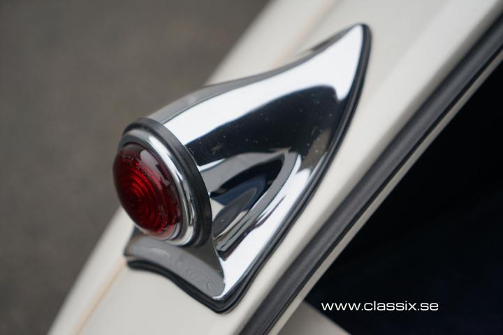 Interior: Inside the XK120 FHC, we find dark blue leather and carpeting in the same color. All the beautiful wood panels in the car are new. The instruments have been revised, and once you’re seated behind the large steering wheel, you’ll feel ready for a long, comfortable drive. The 1954 Jaguar features a clever design, with a small flap on the side of the car allowing cool air inside. When you also open the small screens at the back, the air flows through the car, keeping you cool even on hot days.