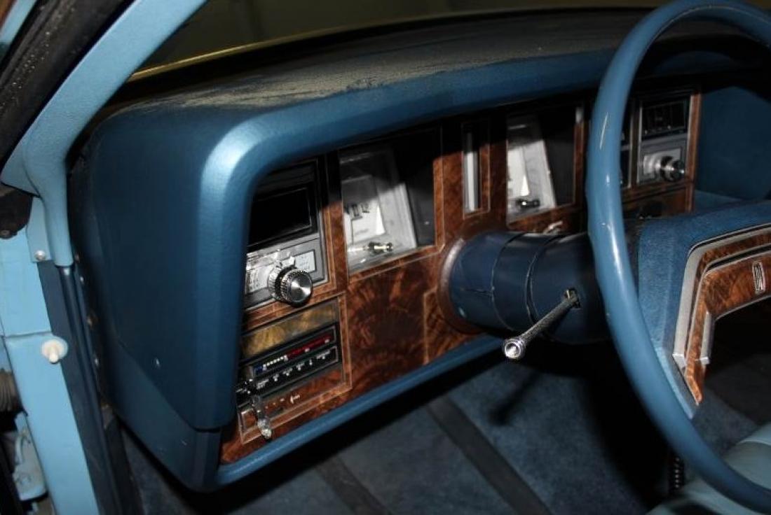 The Blue leather interior is on a power split seat, power windows, power vent windows, power door locks, tilt column, Wood grain dash, blue dash pad, blue carpet and floor mats, blue head liner and sun visors with mirrors that are lighted. Cruise control, delay lights, factory AM/FM/8 Track/CB radio. Power trunk opener in glove box. Looks new inside.