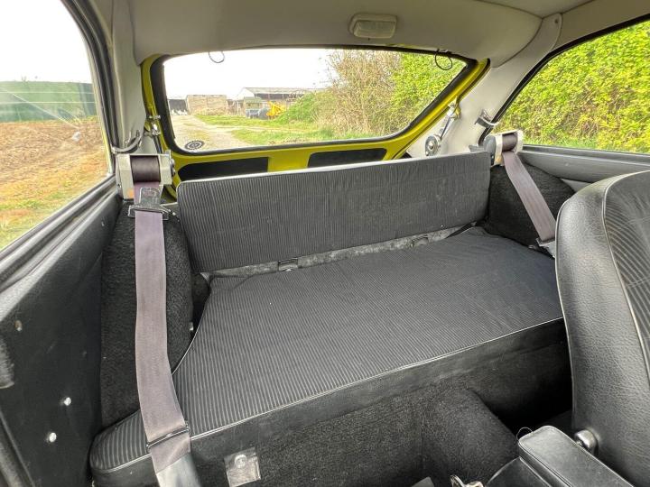 Before passing the car to Mr Hill, Mrs Stowe sent the car away in 1987 to a local bodyshop to have the panelwork improved due to the usual tin worm. Thankfully none of this was structural and was limited to replacing both doors, wings, sills, boot floor and the associated paintwork, which went on to become a full glass out respray in the original rare and attractive Citron Yellow. All this came at a cost of nearly £3000- that's approx £8500 in todays money!! We know this because the bill is in the history file! All I can say is it was worth it- this bodyshop were obviously true craftsman, because 38 years later the car still looks like it was painted yesterday! The paint retains a beautifully deep shine that you could swim in, with no dry areas, crazing or runs.