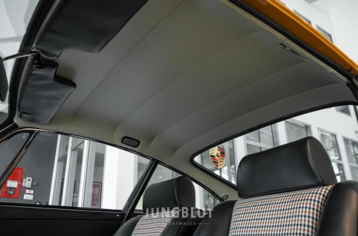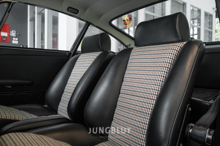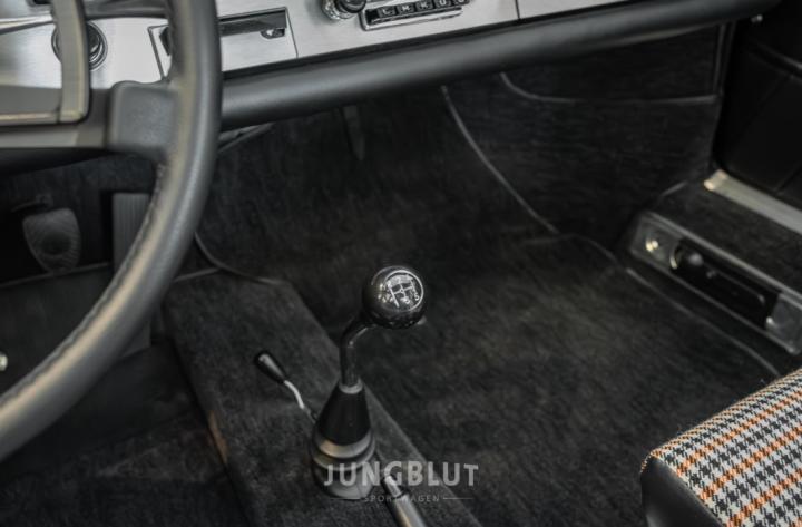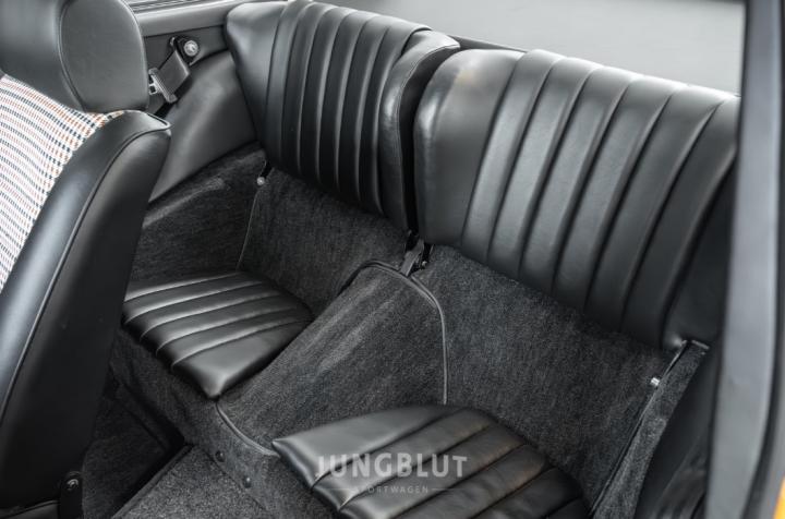 Der jetzige Besitzer hat die Sitze mit Pepita-Stoff beziehen lassen, was farblich sehr gut zur Lackierung passt.
