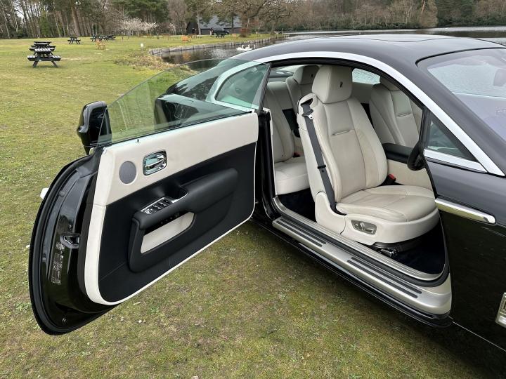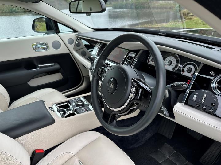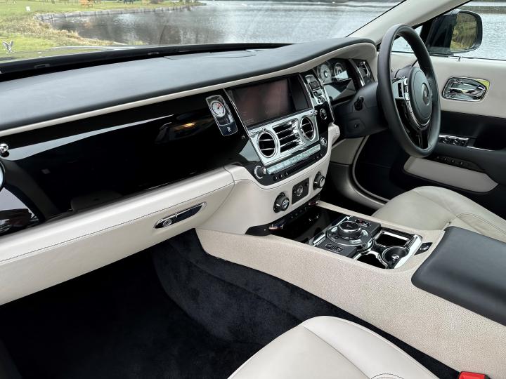 Optional equipment specified includes tyre pressure display, comfort access, reversing camera and top view, ambient interior light, high-beam assistant, lane departure warning, side view camera, stolen vehicle tracking, navigation system professional, head up display, fixed glass roof, 21 inch seven spoke fully polished wheels, USB and Bluetooth with assist and Rolls-Royce monograms to all headrests.