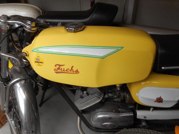 Een mooie Fuchs, lichtgeel en uit de jaren 70. Grote keus in motor- en bromfietsen in de Stolze Collectie!
