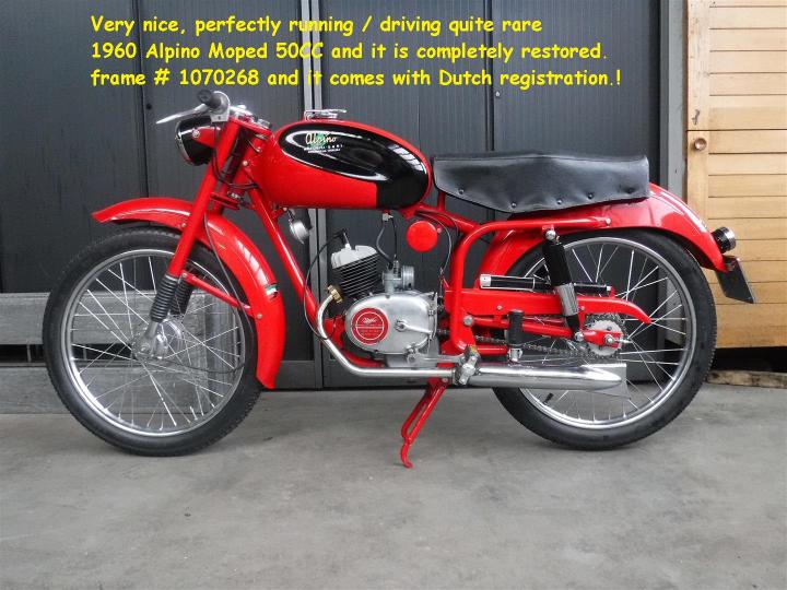 Zéér mooie, perfect lopenderijdende Alpino Bromfiets 50 CC. Geheel gerestaureerd en best zeldzaam. Grootste keus in ECHTE klassiekers met meer dan 450 stuks in "de Stolze Collectie", van project tot perfect !