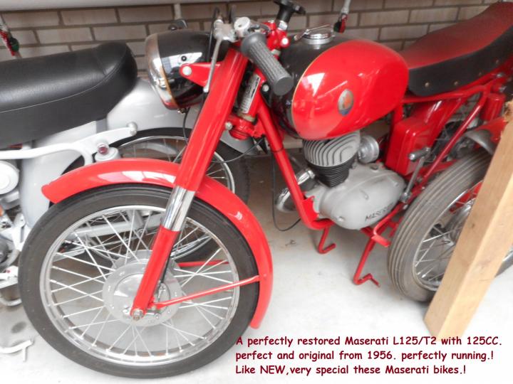 Een prachtig gerestaureerde Maserati L125T2 met 125CC. Origineel uit 1956. Loopt en rijdt zeer goed. Heel bijzonder ! Grootste keus in ECHTE klassiekers met meer dan 450 stuks in de Stolze Collectie: van project tot perfect !