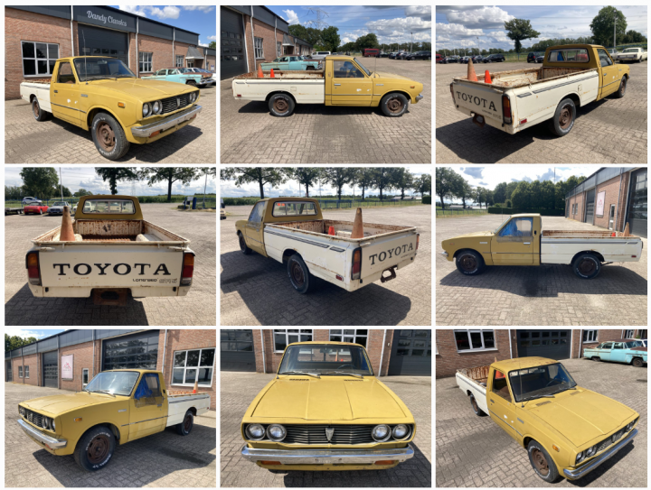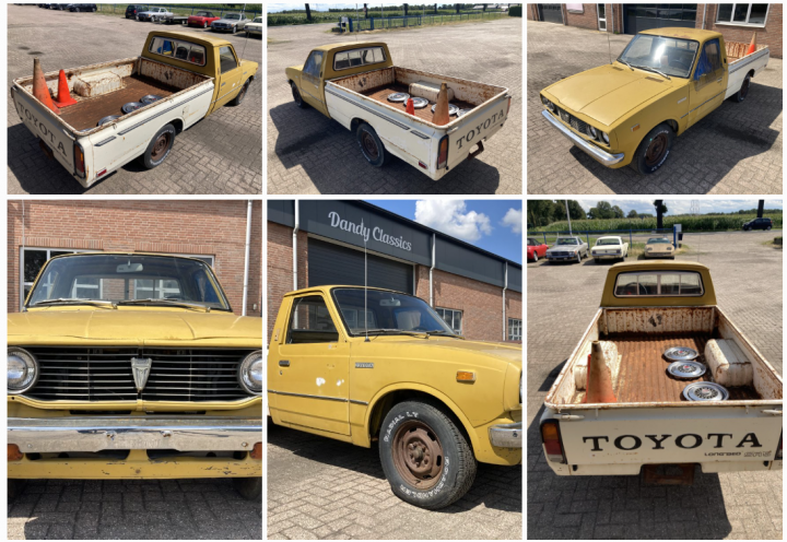 The interior is still original and needs to be partially renovated. Currently, the odometer displays 99.712 miles, believed to be original. Rare airconditioning option, still connected and likely serviceable. Original jack and wheel wrench included. The rear bumper and the original hub caps are missing, but otherwise the Hilux is considered to be largely complete.