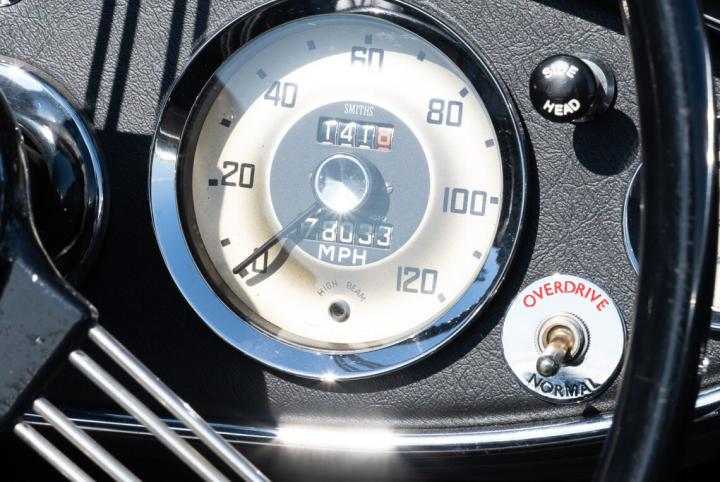 3249 N was the subject of a recent total nut and bolt restoration by ourselves and finished in its original colour Colorado red with black leather trim and black weather equipment. Fitted with 72 spoke painted wire wheels, overdrive, DWR sports exhaust system and 123 electronic distributor.