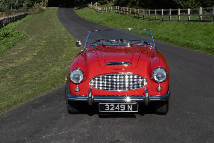 Austin Healey 3000 MK 1 BT7. Built on between the 29th and 20th of April 1959 and dispatched to Lookers Limited of Manchester on the 7th of July 1959. This car still retains its original registration number 3249 N which was issued in Manchester on the 4th of August 1959.