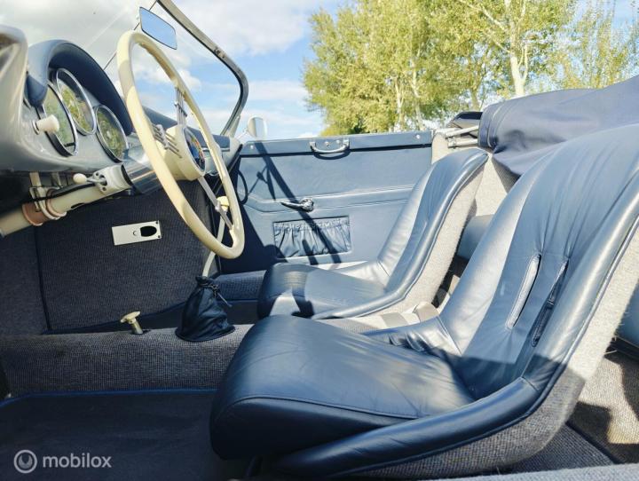 Als u nou echt en gave speedster zoekt, kom dan zeker eens kijken bij ons. De auto die we in de verkoop hebben voor de eigenaar is tot in detail nagemaakt van het origineel. Alleen de body van polyester verraad het dat het een replica is. De stuurkolom is als het origineel, handrem niet meer in middentunnel, maar onder dashboard, 5 gaats wielen met schijfremmen etc. Voorzien van lange versnellingsbak, zodat 120 km/u rustig rijdt. De banden zijn Vredestein classic en de motor heeft een speedster koeling en is getuned tot 90-100 pk. Totaal 10.000 km gereden met de auto sinds de bouw. Net ingereden dus en zo voelt het ook. De eigenaar is 81 jaar en nog deze zomer met de auto rondrit door Engeland gedaan, maar nu is het goed geweest, tijd voor een andere hobby..