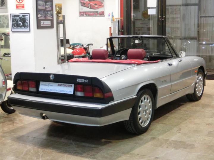 1.962 CC., 125 CV, 4 CILINDROS, 5 VELOCIDADES, 2 PLAZAS, VERSIÓN Q.V. - QUADRIFOGLIO VERDE, SERIE 3 AERODINAMICA, CARROCERÍA PININFARINA, TIPO 115 - ZAR11538 TWIN CAM, MOTOR TIPO 515, DOBLE CARBURACIÓN DELL'ORTO DHLA40N, EMBRAGUE NUEVO, CAPOTA DE LONA NUEVA Y CUBRE-CAPOTA, TAPICERÍA DE CUERO MICROPERFORADO, VOLANTE DE CUERO, ELEVALUNAS ELÉCTRICOS, RADIO-CD MP3, RUEDAS NUEVAS, 5 LLANTAS ORIGINALES ALFA, FRENOS DE DISCO, EDICIÓN LIMITADA, SOLO 2.598 UNIDADES FABRICADAS, COLOR PLATA METALIZADO AR767, MUY BUEN ESTADO Y FUNCIONAMIENTO, MATRÍCULA PROVINCIAL (T), DOCUMENTACIÓN e ITV AL DÍA.