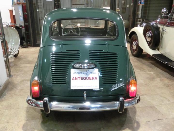 767 CC., 25 CV, 4 CILINDROS, 4 VELOCIDADES, CARBURADOR WEBER, VERSIÓN SEISCIENTOS E (600E), COLOR VERDE INGLÉS SEAT 384 IVANOW, MATCHING NUMBERS, NÚMEROS COINCIDENTES DE BASTIDOR Y MOTOR, BASTIDOR SERIE "BE", MOTOR SERIE "DA", TAPICERÍA COMBINACIÓN TELA - POLIPIEL, CLAUSOR ANTI-ROBO, CORTINILLAS ANTI LLUVIA/FRÍO EN MOTOR, CAJA HERRAMIENTAS ORIGINAL SEAT, 4 PLAZAS, LIBRO DE INSTRUCCIONES ORIGINAL, RECIENTEMENTE RESTAURADO, GRAN NIVEL DE CONSERVACIÓN, HISTORIAL RECIENTE DE MANTENIMIENTO, MUY BUEN ESTADO, CORRECTO FUNCIONAMIENTO, MATRÍCULA ORIGINAL (GE), DOCUMENTACIÓN e ITV AL DÍA.