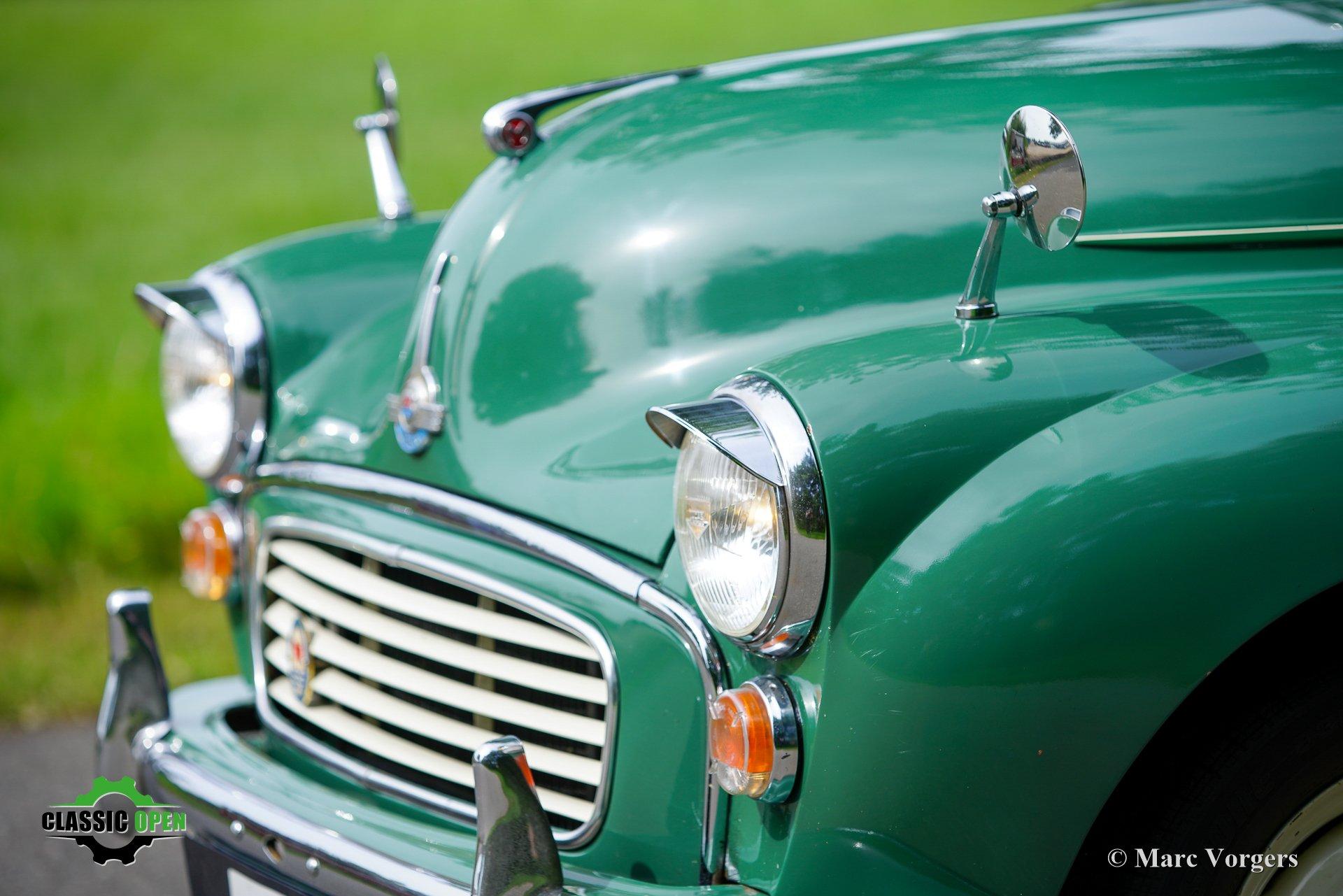 De auto beschikt over een volledige historie, waarin routineonderhoud en een ombouw naar linkse besturing gedocumenteerd zijn. In 2007-2008 werd de carrosserie professioneel gerestaureerd door een Morris Minor-specialist in Engeland.