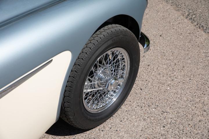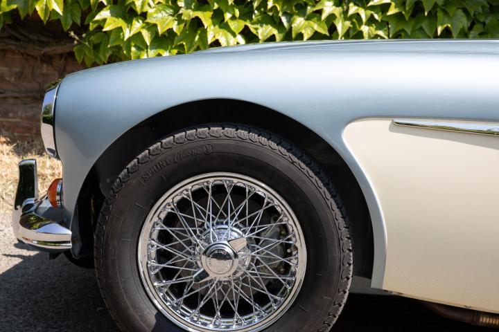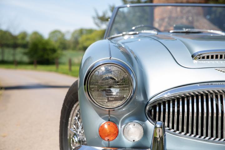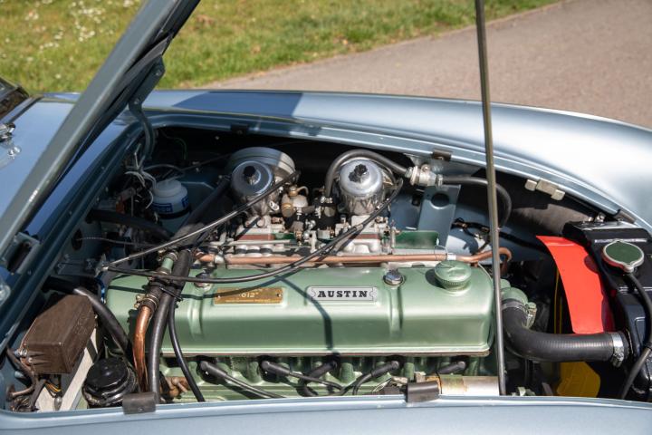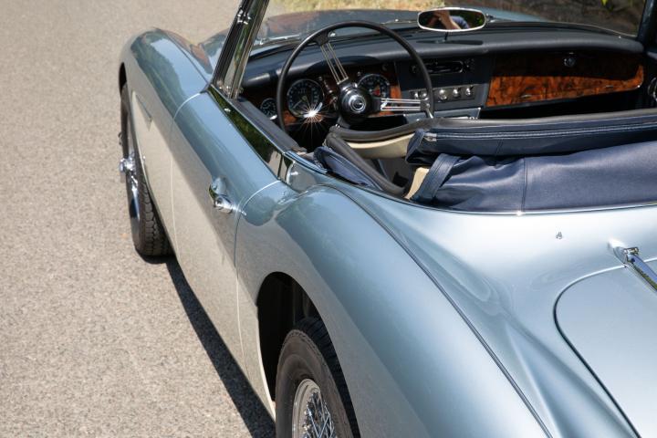 Most pleasingly, the fresh Healey Blue Metallic paint is the original factory colour for this example, faithfully reproduced at a great quality that is far superior to the 1967 factory finish. The engine is the original, as is the gearbox and rear axle. All body panels appear to be original and the car was rebuilt on its original chassis. The car sit on 60 spoke chrome wire wheel with Vredestein tyres new at the time of restoration.