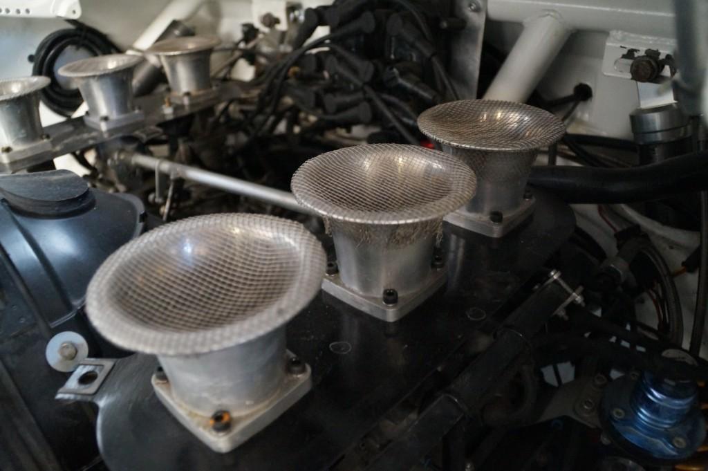 Authentic center-lock racing wheels in matte black complete the period look, paired with massive racing slicks (10J x 15 front, 14J x 15 rear). An additional set of rain tyres accompanies the car, ensuring readiness for any track condition.