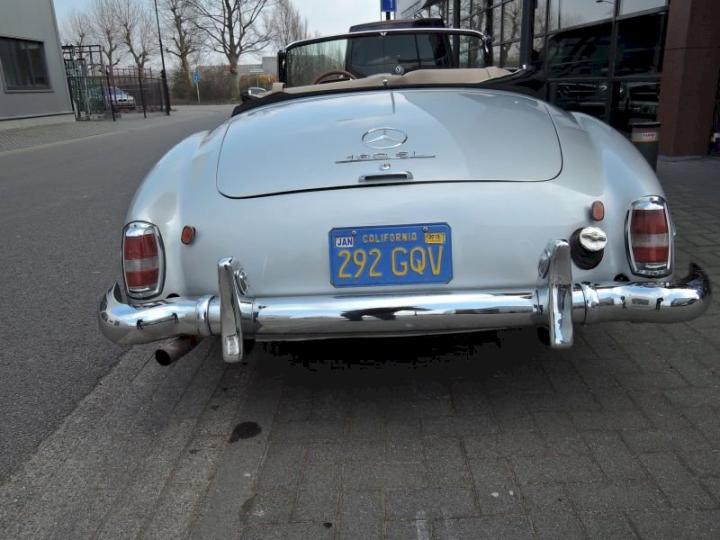 Betreft een redelijk exemplaar deze late versie 190SL, een auto met een leuk uiterlijk, het lakwerk van origine donkergrijs 190G is in het verleden gewijzigd in de kleur zilver metallic 180G en is in een redelijk conditie zo ook het chroomwerk is netjes en past goed, de voorruit omranding mag vroeg of laat verchroomd worden, het rood leder interieur met passend tapijt is in een goede staat, softtop is in een goede conditie, qua body optisch goed echter o.a de vloerbodem-delen hebben aandacht nodig, nieuwe bodem delen zijn reeds aanwezig en gaan mee met de koop, technisch en motorisch loopt en rijdt deze 190SL cabriolet naar behoren, de kwetsbare Solex carburateurs zijn in het verleden vervangen in Mikuni met behoud van luchtfilter en aanzuigbuis, het motor onder blok is in het verleden vervangen door de juiste ruil motor af fabriek, het bovengedeelte met name de cilinderkop is nog origineel.