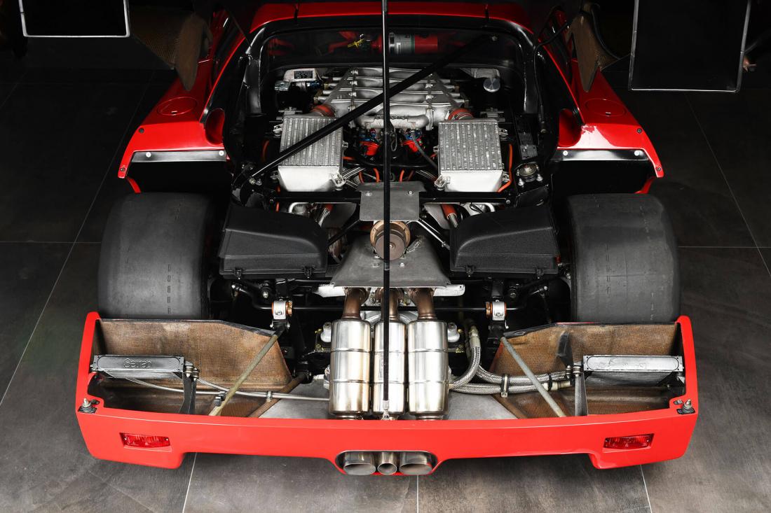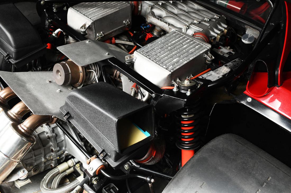 The 2,936cc motor produces approximately 500bhp at 7,000rpm with the help of two water-cooled IHI turbochargers running 1.1 bar of boost – at 1,202 kg the F40 still has a phenomenal power-to-weight ratio. Shatteringly fast by any comparison (especially for 1988), the F40 can sprint from 0-60mph in just under 4 seconds and hit 201mph flat out making it the first production car to surpass this mystical boundary.