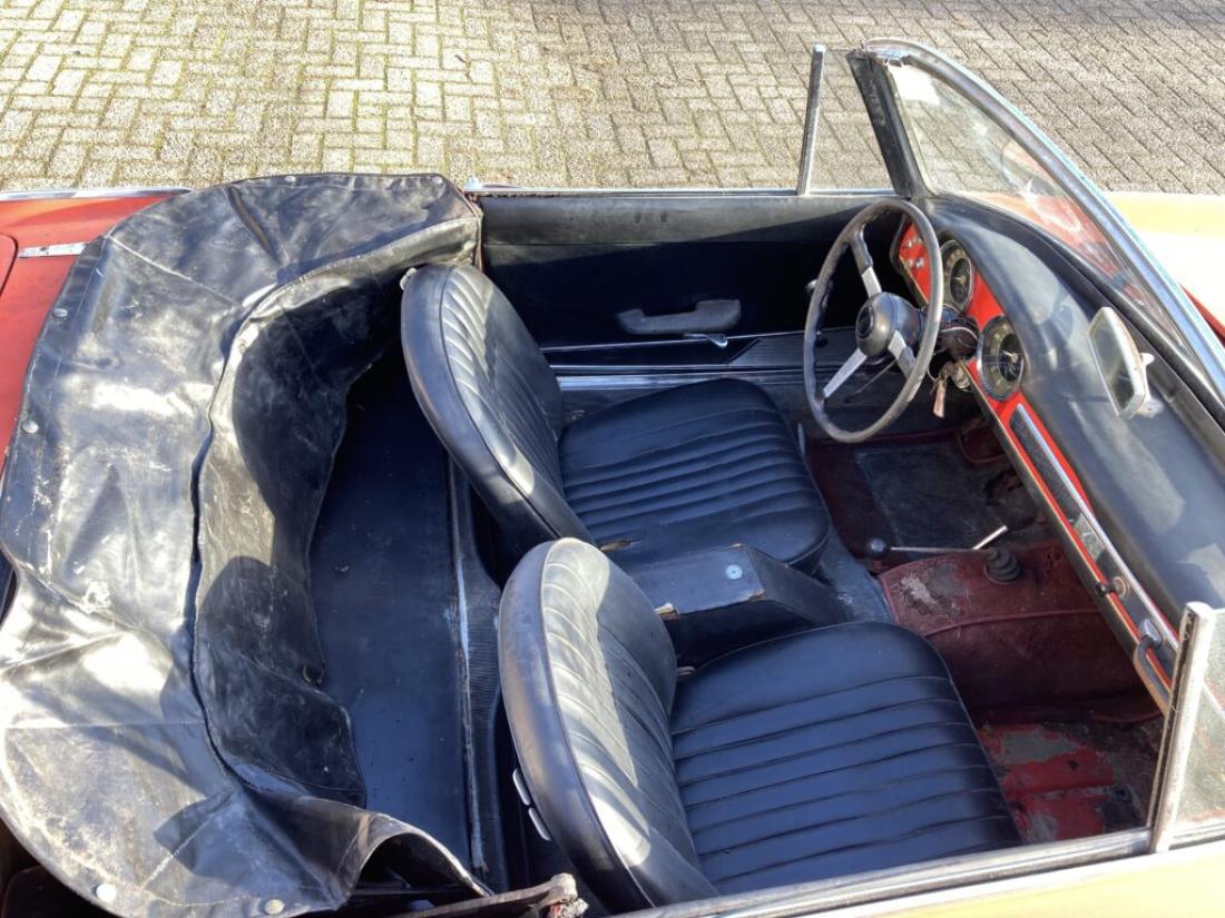 The black interior is in original condition, and needs to be renovated. The odometre shows 42.357 mls.