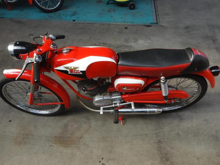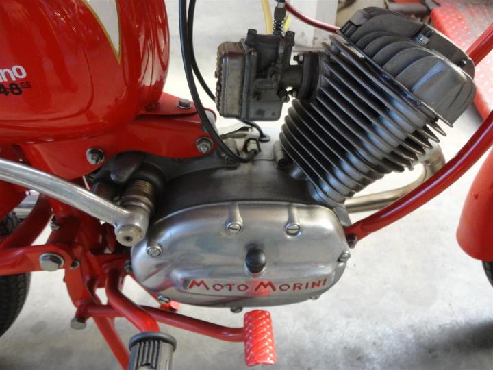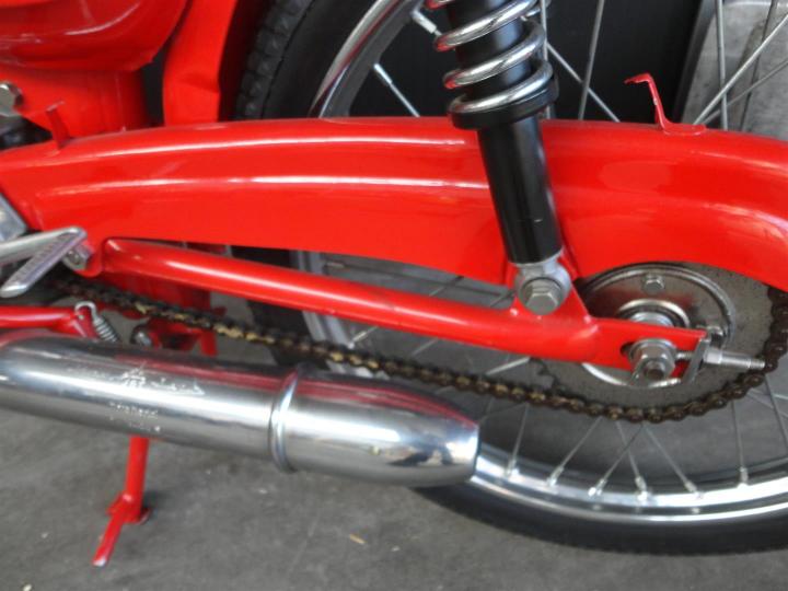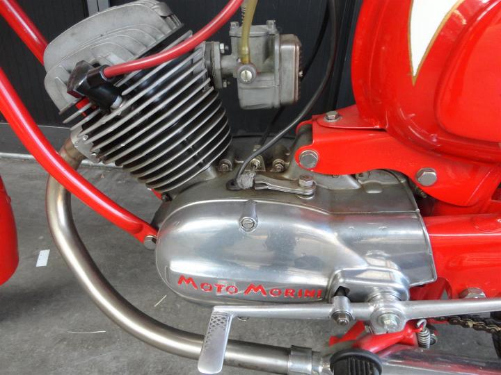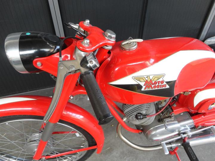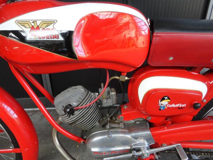 Een perfect gerestaureerde, ZEER fraaie, geheel originele en goed lopende 1962 Moto Morini Corsarino. Een 50CC 4takt motor. Grote keus in motor- en bromfietsen in de Stolze Collectie!