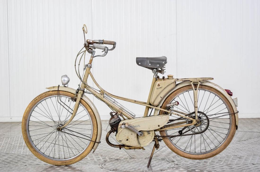franse import, met echte patina look. Motobécane-fabriek, lanceerde zijn rijwiel met hulpmotor op de Utrechtse Najaarsbeurs van 1949, hetgeen een wereldprimeur was! De motorpers van die tijd beschreef de Mobylette als volgt: "Deze Kaptein heeft een motortje van 50 cc in een speciaal voor dit doel gemaakt frame. De tweetakt motor is in staat de fiets met een snelheid van 30 km/u voort te bewegen en dat het motortje dit zonder moeite doet blijkt wel uit het hierbij ontwikkeld lage toerental van 2800 toeren per minuut. Het brandstofverbruik bedraagt 1 liter op 70 á 80 km, met een mengverhouding van olie op benzine van 1 op 16, terwijl het tankje keurig tussen zadelframebuis en achterspatscherm weggewerkt is en twee liter brandstof kan bevatten. Het gewicht van het enkele frame is 18 kg en dat van het motortje 7 kg, wat overeenkomt met dat van zijn soortgenoten. Wat wij bij de motorfietsen de korte of primaire ketting noemen is hier uitgevoerd als een V-snaar die door een scherm aan het oog (en de broekspijp) onttrokken wordt. De secundaire overbrenging gebeurt door een ketting. Het gas wordt vanaf het stuur bediend door een draaibaar handle en mocht de motor onverhoopt tijdelijk de geest geven dan kan men de drie pennetjes aan de linkerzijde uittrekken en de motor staat vrij, zodat men zich trappend kan verplaatsen. In de koplamp zit nog een batterij verscholen die de lamp kan laten branden, die anders door de opgewekte stroom van de vliegwielmagneet gevoed wordt. Het motortje zelf was geen nieuwe constructie, maar in grote trekken een voortzetting van een type dat - met 60 cc cylinderinhoud en in combinatie met een losse tweeversnellingsbak - in de Poney, een licht motorfietsje, was gebruikt. Echter de motorkarakteristiek was danig gewijzigd. Het accent was nu gelegd op een grote trekkracht bij een laag toerental. Hoog vermogen was ingeruild voor trekkracht en een lange levensduur. Wat meteen opvalt bij het bekijken van de Mobylette - want zo wordt deze bromfiets toch altijd nog in de wandeling genoemd - is de practische en doelgerichte bouw. Een rijwielgedeelte met lage instap, ook geschikt dus voor dames, en het motortje gemonteerd voor de trapas, waardoor een laag zwaartepunt bereikt wordt en de kans op vervuiling van de kleding gering is. Het tankje is slim weggewerkt in een anders loze ruimte tussen zadelbuis en achterspatbord. Bedrijfsinformatie: Prijswijzigingen, druk- en zetfouten voorbehouden. Altijd ruim 500 auto's op voorraad, check de actuele voorraad via www.hofman.nl. Volg ons ook op facebook.com/HofmanLeek. Bel ons voor de mogelijkheden voor inkoop, verkoop, consignatieverkoop en stalling. * Veilig online kopen @ hofman.nl * Levering aan huis mogelijk *