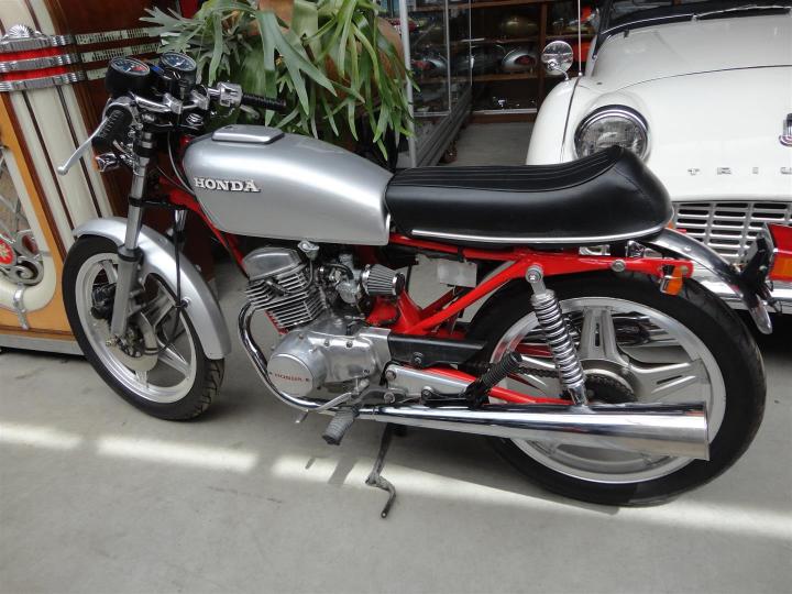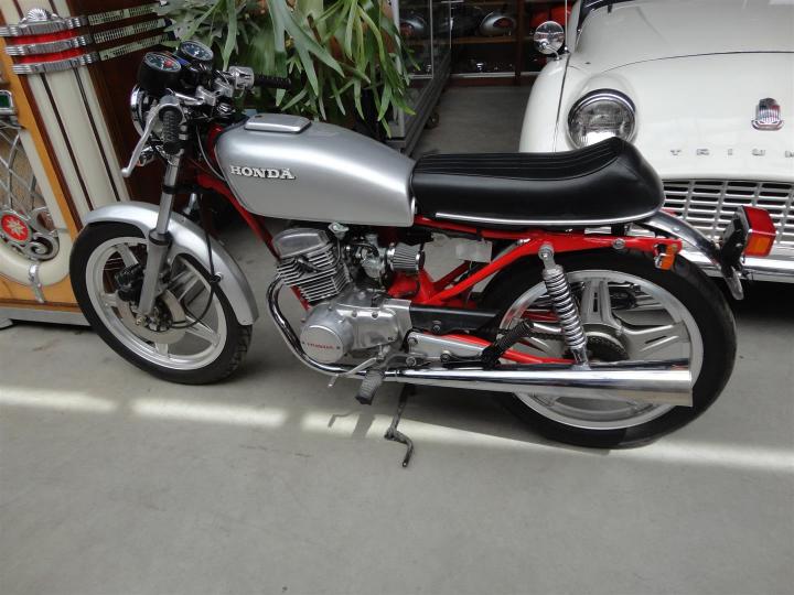 Een perfecte, PERFECTE Honda 125CC Café racer. Perfect lopende 2 cylinder motor.NL kenteken en 16.390 miles op de teller Grote keus in motor- en bromfietsen in de Stolze Collectie!