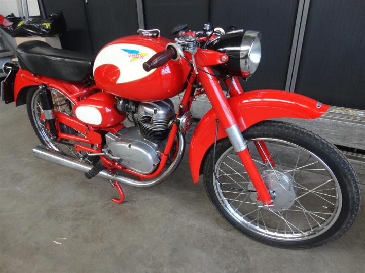 Perfecte, zeer mooie en perfect rijden 1960 klassieke Italiaanse Ceccato 125 CC 4 takt motorfiets. Volledig origineel gerestaureerd tot perfecte conditie. Originele Nederlandse papieren. Zeer bijzonder, een echte schoonheid. Grote keus in motor- en bromfietsen in de Stolze Collectie!