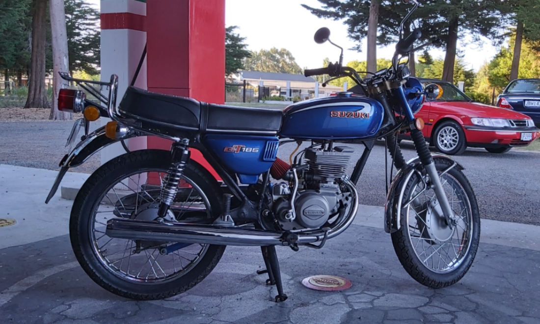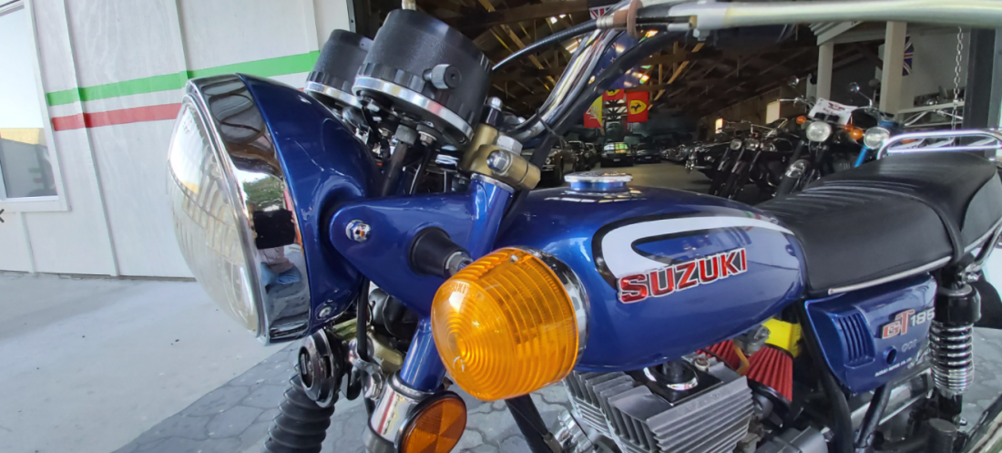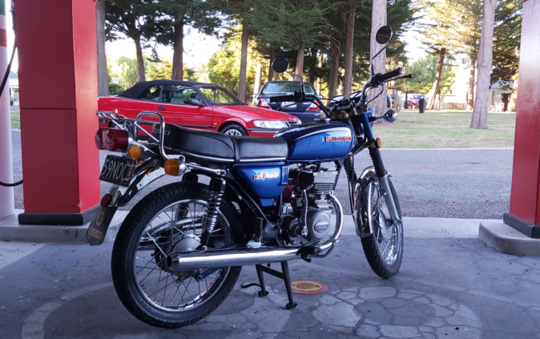 This Japanese lightweight is great fun. What makes this little Suzuki delightful is its nimble handling and positive steering. Even a passing vintage bike fan would agree that its a little darling.